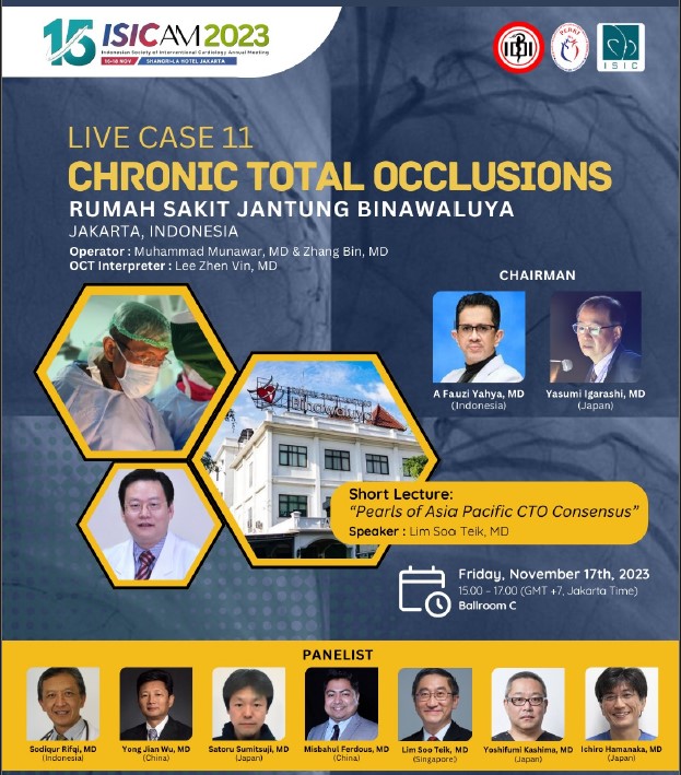 Live Case 1 : kasus CTO (Chronic Total Occlusion) adalah suatu keadaan dimana pembuluh darah koroner telah tertutup sepenuhnya oleh tumpukan lemak dan kapur yang mengeras dalam waktu lama. Bertindak sebagai operator adalah Muhammad Munawar, MD dan Zhang Bin, MD.
